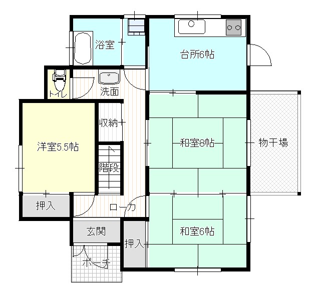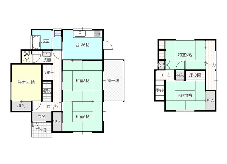 | 間取内容 | 1階洋室5.5帖1室 1階和室6帖2室 2階和室6帖2室 |